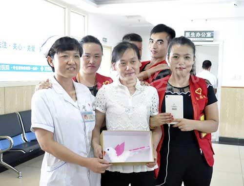 (母亲和志愿者来济南神康医院迎接夏莉容康复出院)