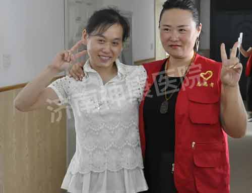 67岁的母亲赵淑云看到女儿的变化,激动地的流下泪水,拉着夏莉容的主治医师、济南神康医院院长张淑芹的手送上满含深情的锦旗。她说:感谢临沂琅琊志愿者协会、北京仁爱慈善基金会的前后奔忙,感谢神康医院的免费救治,不然的话,像我这样经济困难的家庭根本没能力为闺女治病,感谢张院长精心治疗,感谢神康医院医生、护士的热情服务,把自己女儿20年的病给治好了,真是非常感谢!